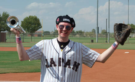 Celebrating trumpet playing at ballparks and baseball games featuring cheers and songs from USA, Japan, and around the world.